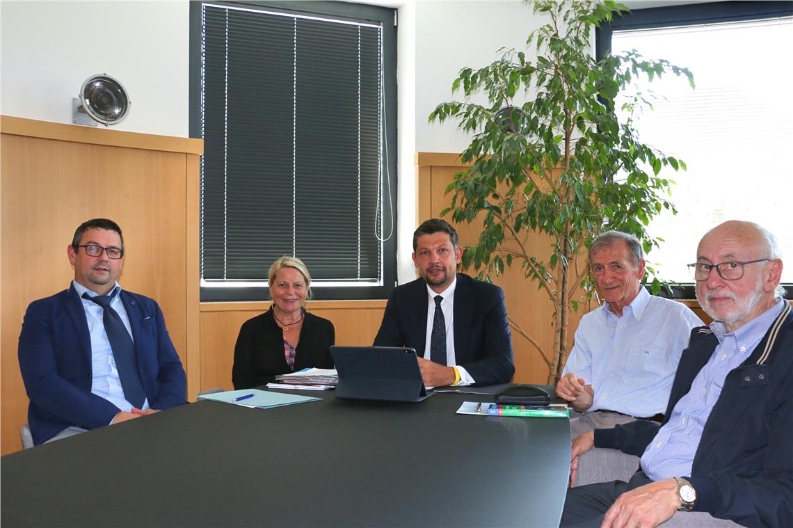 L'assessore Alfreider (centro) a colloquio con i vertici del Curatorium per i beni tecnici culturali (da sx): Felix Ploner, Wittfrida Mitterer (direttrice), Artur Scheidle (presidente) e Josef March - Foto: USP