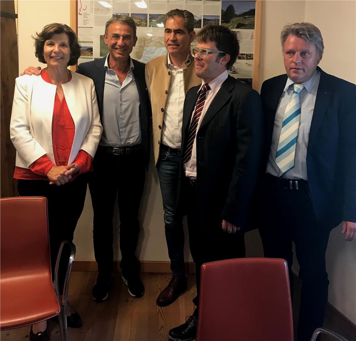 Hanno ricordato al ministro Costa le unicità dell’area altoatesina del Parco Nazionale dello Stelvio. Da sx: ass. Hochgruber Kuenzer, il ministro Costa, i direttori Gunsch e Maier, e Altstätter - Foto: USP