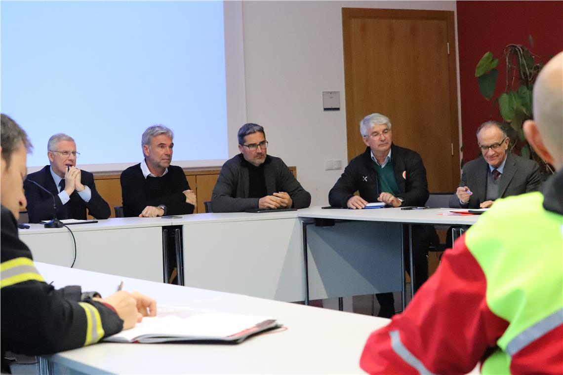 Riunione del Centro operativo provinciale della protezione civile con il presidente Kompatscher e il prefetto Cusumano. Oltre 2.000 vigili del fuoco volontari in servizio.