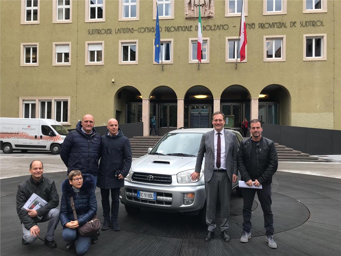L’assessore al patrimonio, Massimo Bessone, ha consegnato nei giorni scorsi al sindaco di Valle Castellana, Camillo D’Angelo, le chiavi di un veicolo donato dalla Provincia di Bolzano alla località abruzzese colpita dal terremoto del 2016. "Ancora oggi, dopo qualche anno dal sisma che ha colpito il centro Italia - spiega Bessone - i cittadini vittime di questa sciagura hanno bisogno di sostegno ed aiuto. Con questa donazione vogliamo dare un contributo concreto al Comune di Valle Castellana, che utilizzerà il veicolo per la sua attività istituzionale". Il Comune di Valle Castellana, in Provincia di Teramo, aveva richiesto alla Provincia di Bolzano la disponibilità di un veicolo a trazione integrale: adempiute le incombenze di carattere amministrativo e tecnico per la procedura di cessione del veicolo, lo stesso è stato ufficialmente consegnato nei giorni scorsi.