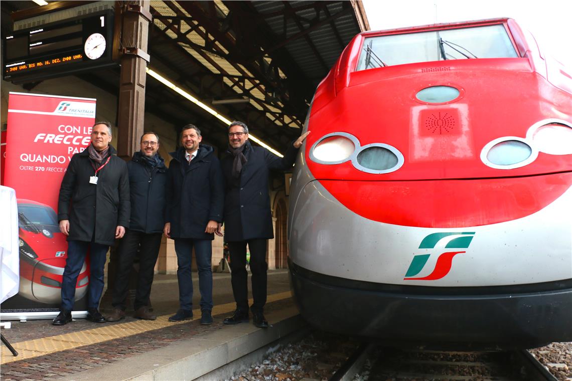 Primo viaggio per il treno diretto che collega Bolzano a Milano in sole tre ore. Presentazione ufficiale con Kompatscher, Alfreider e i vertici di Trenitalia.