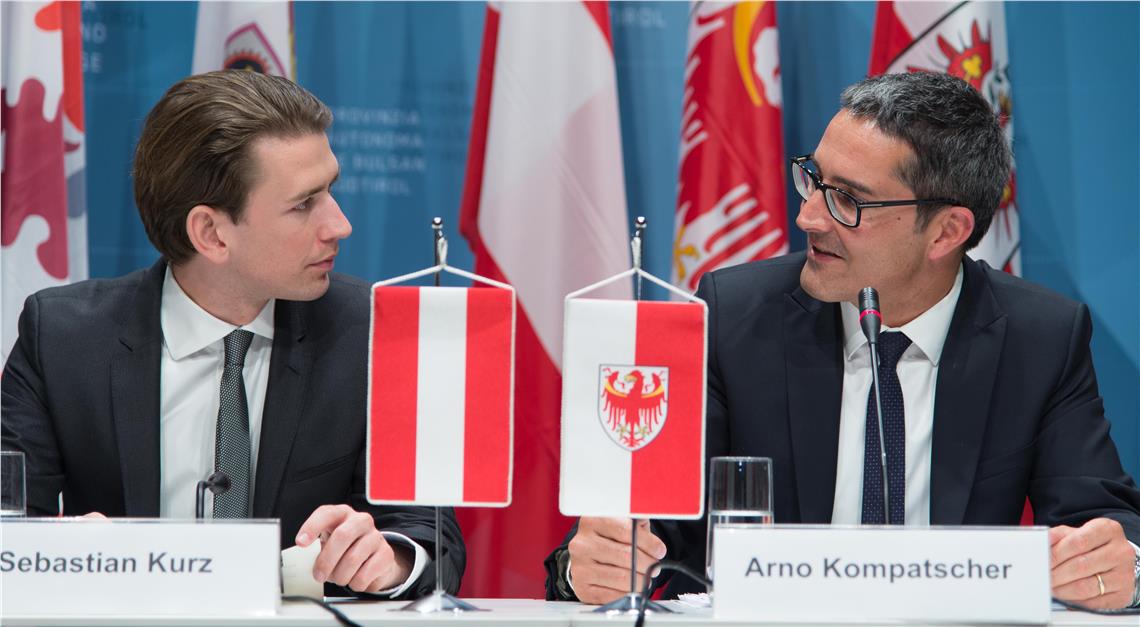 Si è insediato oggi (7 gennaio) a Vienna il nuovo governo austriaco guidato dal cancelliere Sebastian Kurz, che ha ricevuto ufficialmente l'incarico di guidare l'esecutivo dal presidente della Repubblica, Alexander van der Bellen. Arno Kompatscher, formula i migliori auguri al nuovo governo, "che dovrà affrontare compiti importanti e ricchi di responsabilità, cercando di operare al meglio per le cittadine e i cittadini all'interno della nostra casa comune europea".