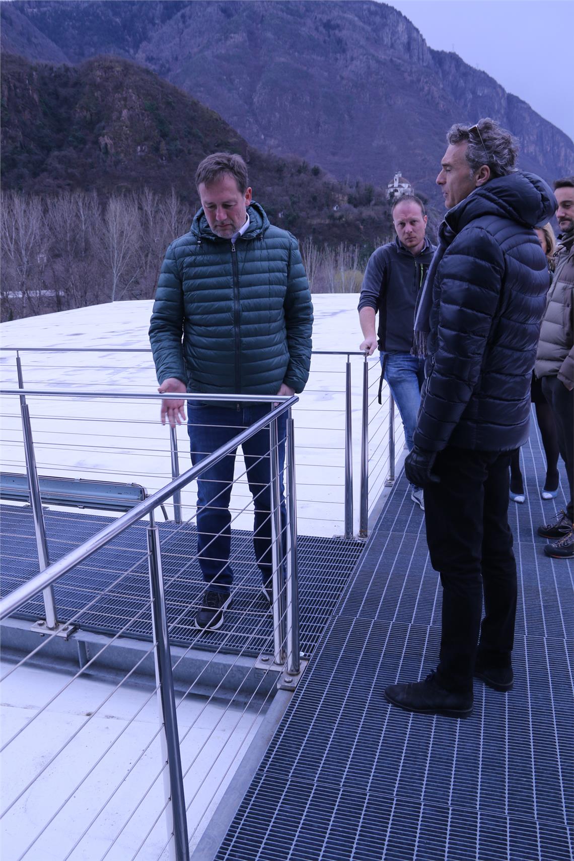 Conclusa una serie di manutenzioni urgenti alla sede di Eurac, si procede con il risanamento del tetto. Sopralluogo dell'assessore all'edilizia pubblica Bessone.
