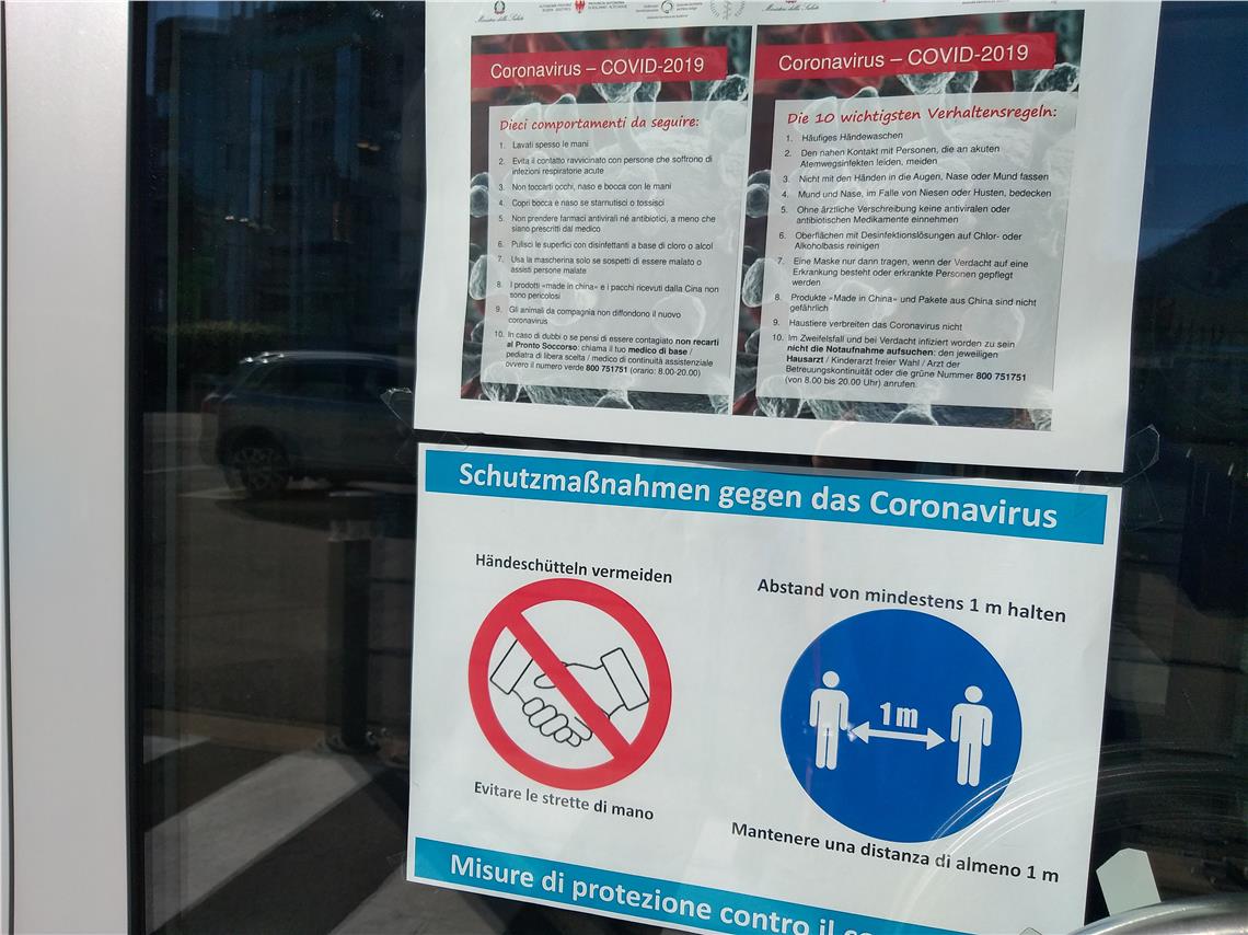 I comportamenti idonei per contenere e contrastare il contagio da virus Covid-19, richiesti anche ai cittadini dell'Alto Adige, mirano ad evitare assembramenti di persone in ogni luogo sia pubblico che privato e a limitare, se possibile, gli spostamenti al minimo necessario. Nei luoghi che restano accessibili, come indicato dal nuovo decreto del presidente del Consiglio Giuseppe Conte, rilasciato questa notte (8 marzo), deve SEMPRE essere mantenuta la distanza di 1 metro da altre persone per evitare che con lo stretto contatto si possa trasmettere il virus. Gli accompagnatori di pazienti non possono permanere nelle sale di attesa dell’accettazione e dei pronto soccorso. I parenti ed i visitatori strutture di ospitalità e lungo degenza, residenze sanitarie assistite (RSA), hospice, strutture riabilitative e strutture residenziali per anziani possono visitare i congiunti solo nei casi indicati dalla direzione sanitaria della struttura.