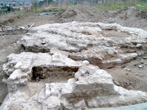 Die Freilegung der Mosaike ist aber noch nicht abgeschlossen. Großteils sind sie noch mit Erde und Mauerschutt bedeckt. Unmittelbar nach deren Freilegung wird ein Restaurator ans Werk gehen, um eine korrekte Konservierung zu gewährleisten. Die nur vereinzelt vorhandenen Kleinfunde, darunter ein Bruchstück eines Keramikgefäßes sowie ein winziges Fragment eines Glasbehälters, scheinen nach den Worten der Landesarchäologen darauf hin zu weisen, dass das Gebäude, das zwei Bauphasen aufweist, auf das 3. bis 4. nachchristliche Jahrhundert zurückgeht.