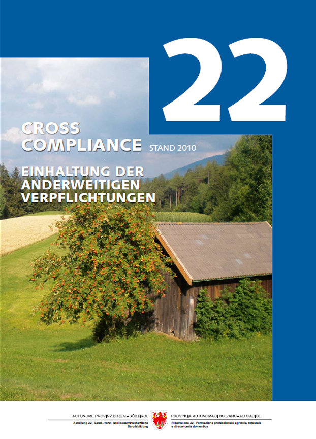 Um der Informationspflicht nachzukommen, wurde von der Abteilung für die land-, forst und hauswirtschaftliche Berufsbildung, Dienststelle für die Bergbauernberatung in Zusammenarbeit mit den Ämtern für Naturparke und Gewässerschutz eine Informationsbroschüre erstellt; sie ist in allen Bezirksämtern für Landwirtschaft kostenlos erhältlich und kann auch von der Homepage www.bergbauernberatung.it heruntergeladen werden, dort sind auch die Termine und Orte der Informationsveranstaltungen zu Cross Compliance 2010/2011 ersichtlich.
