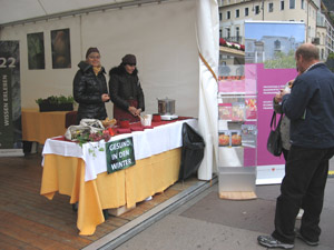 935 Portionen Paprika-Apfelsuppe wurden am vergangenen Samstag beim Erntedankfest auf dem Bozner Walterplatz ausgeteilt. Die Fachlehrerinnen der Fachschule für Hauswirtschaft Frankenberg in Tisens boten die vitaminreiche und würzige Suppe als Verkostung an, dazu gab es selbstgebackene Sesamgrissini. Die Kolleginnen der Fachschule für Hauswirtschaft Salern informierten am selben Stand über Wintergemüse und hatten einen rund zwei Meter großen großen Ernährungskreis aus Lebensmitteln aufgebaut. Das Herstellen von Sauerkraut wurde erklärt und dessen Bedeutung als vitaminreiche Wintermahlzeit betont. Zahlreiche Besucherinnen und Besucher informierten sich über die Fachschulen und deren Weiterbildungsangebote.