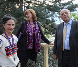 LPA - Hohen Besuch gab es im Elisabeth-Park in Meran anlässlich des 150-jährigen Bestehens der Anlage. Landeshauptmann Luis Durnwalder und Kulturlandesrätin Sabina Kasslatter Mur statten dem Park einen Besuch ab. Sie zeigten sich beeindruckt von der dreigeschossigen Baumterrasse, die die Künstlerin Carmen Müller errichtet hat.