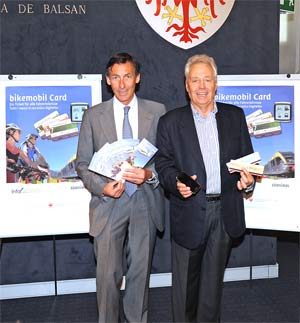 LPA - „Mit der neuen Kombikarte für Bus, Bahn, Seilbahn und Rad können alle Ausflügler umweltschonend und sportlich unterwegs sein“, unterstrich Mobilitätslandesrat Thomas Widmann heute, 27. April, bei der Vorstellung der neuen bikemobilcard in Bozen.
