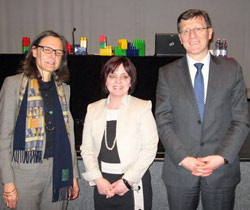 Inspektorin Christa Messner, Direktorin Christine Oberhofer und Schulamtsleiter Peter Höllrigl beim pädagogischen Tag des Kindergartensprengels Bozen