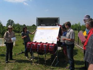 LPA - Südtirols Ertragsanlagen sind zwar bisher weitgehend von Feuerbrandinfektionen verschont geblieben; die Gefahr ist aber noch nicht gebannt, besonders in Neuanlagen könnte noch Befall auftreten. Am Versuchszentrum Laimburg wird deshalb weiterhin intensiv nach Mitteln gegen den Feuerbrand geforscht. Gestern (24. Mai) haben Wissenschaftler der Laimburg in Kirschgartshausen bei Mannheim in Baden-Württemberg Freilandversuche mit Feuerbrand besichtigt.