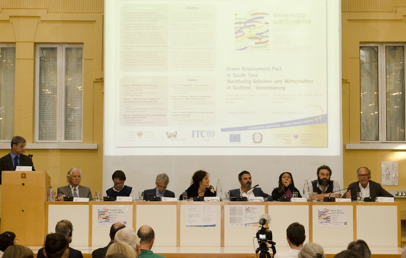 Beim abschließenden Treffen wurde das Thema "Nachhaltig Arbeiten und Wirtschaften in Südtirol" vertieft: Nach einleitenden Überlegungen von ESF-Amtsdirektorin Judith Notdurfter, Arbeits-Ressortdirektor Andrea Zeppa und Jeanette Shalabi vom ITC-ILO gingen Giulio Angelucci und Anton Auer von der Umweltagentur auf das Tagungsthema ein, es folgte ein Referat der Vertreterin der Internationalen Arbeitsorganisation ILO der Vereinten Nationen Cinzia del Rio über Perspektiven zu Beschäftigung und Green Economy.