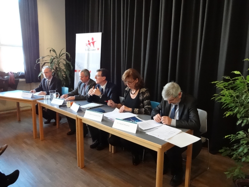 "Selbstverständlich", leitete Landesrätin Sabina Kasslatter Mur die einstündige Pressekonferenz ein, "müssen wir Mehrsprachigkeit fördern. Uns ist gemeinsam daran gelegen, einen attraktiven und gewinnbringenden Sprachunterricht zu gestalten. Darüber hinaus appelliere ich auch an die Familien, ihren Kindern die Begeisterung für die Sprachen zu vermitteln und zu erhalten." Sprache, unterstrich sie, sei das Tor zur Welt: Je früher dieses Tor aufgestoßen wird, je schneller Kinder und Jugendliche begreifen, welches Potenzial in Sprache steckt, desto eher können sie ihre Bildungschancen nützen und ihre beruflichen wie privaten Vorstellungen verwirklichen. "Ich habe die Vision", führte Kasslatter Mur aus, "dass Jugendliche nach Abschluss der Oberschule über ausgezeichnete Kenntnisse ihrer Muttersprache und gute Kenntnisse in Italienisch und Englisch verfügen."