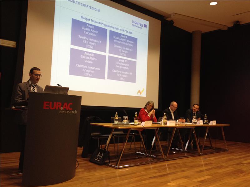 Mit der Veröffentlichung der Teilnahmebedingungen, der so genannten "Terms of Reference", wurde am 26. Februar 2016 der zweite Call des Interreg-Alpenraumprogramms 2014-2020 gestartet. Aus diesem Grund hat das Nationale Komitee des Programms in dieser Woche zu einer Informationsveranstaltung an die Eurac in Bozen geladen. Dabei wurden das Alpenraumprogramm vorgestellt und Informationen zum zweiten Call sowie zu den gesamtstaatlichen Rahmenbedingungen gegeben. Rund 90 Interessierte, vorwiegend aus Südtirol und dem Trentino nahmen an der Informationsveranstaltung teil.