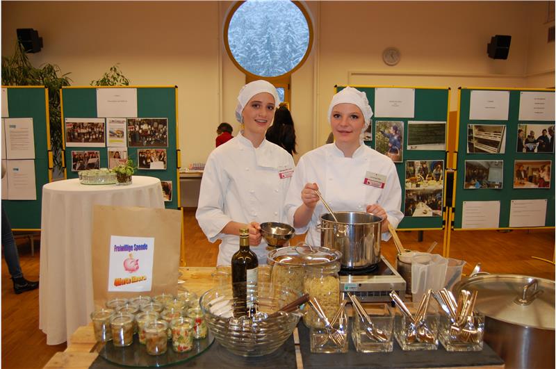 Diesjährige Schulprojekte, wie Energie und Mensch, Sprach- und Kulturreisen und der erste Preis beim Wettbewerb für Politische Bildung 2015 mit dem Resteküche-Workshop konnte man im Seminarraum besichtigen. Bei der Resteküche konnte man Brotsuppe und Nudelsalat verkosten und in zahlreichen Büchern und Medien zum Thema Resteverwertung und Lebensmittelverschwendung Einblick nehmen.