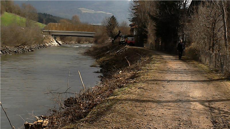 Zur sicheren und raschen Durchführung der Arbeiten ist es notwendig, den Weg auf dem Rienzdamm im Abschnitt von der Peintner Brücke bis zur Heilig-Kreuz-Straße Nr.10 zu sperren. Bis Ende Juni sollten die Bauarbeiten abgeschlossen sein.