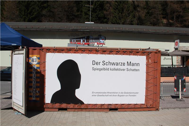 Wie die Bevölkerung eines Dorfes in Südtirol einen obdachlosen, schwarzen Mann wahrnimmt, welche Ängste und Gedanken diese Anwesenheit ausgelöst hat, darum geht es in der dokumentarischen Installation "Der Schwarze Mann-Spiegelbild kollektiver Schatten" von Stefan Fabi und Manfred Bernard. Die Auseinandersetzung mit dem "Schwarzen Mann" bildet den Auftakt der diesjährigen Aktionstage Politische Bildung, die unter dem Motto "Angst macht Mut" stehen.