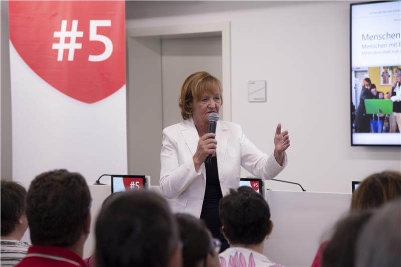 Darum, Menschen mitzunehmen und möglichst viel Selbständigkeit zu ermöglichen, geht es bei der Unterstützung von Menschen mit Behinderung. "Wir haben das neue Inklusionsgesetz beschlossen und architektonischen Barrieren weiter abgebaut", erklärte die Landesrätin. Auch die Situation am Arbeitsmarkt sprach Stocker an: In jedem Jahr gelinge es, 170 Menschen mit Behinderung in den Arbeitsmarkt zu integrieren. Weitere wichtige Themen im sozialen Bereich waren das neue Gesetz zur Sachwalterschaft, die Prävention und Bekämpfung von Suchterkrankungen und die Erhöhung des Mietbeitrages für Niedrigrentner. "Mir ist es in meinem Leben immer um Gerechtigkeit gegangen", sagte Stocker, da sei es nur gerecht, Menschen, die zum Aufbau dieses Landes beigetragen haben, im Alter zu unterstützen. Die Pflegesicherung trage zur Stärkung der Pflege zuhause und zum stetigen Ausbau der Senioren- und Pflegeheime bei. Dies sei ein klarer Auftrag in der alternden Gesellschaft.