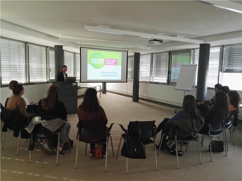 Der Besuch des Unternehmenssitzes von Stahlbau Pichler ist eines mehrerer Angebote der Initiative "MINT-Girls und Technik", mit denen das Landesamt für Ausbildungs- und Berufsberatung den Schülerinnen der fünften Oberschulklassen Einblick in technische und naturwissenschaftliche Berufe eröffnen möchte. So hatte in den Wochen zuvor eine Mädchengruppe das "BITZ unibz fablab" besucht, die Werkstätte für kooperative Projektarbeit der Universität Bozen.