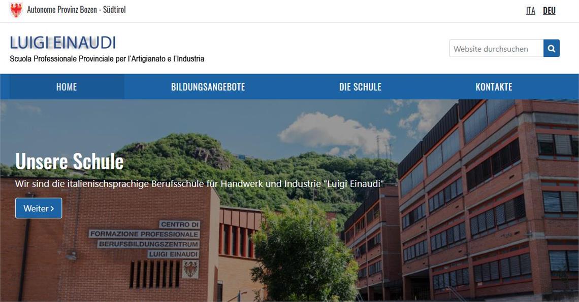 Nachdem im Herbst des Vorjahres die deutschsprachigen Landesberufsschulen sich mit einem neuen Webauftritt präsentieren, folgen nun auch die italienischsprachigen Berufsschulen. Unter dem einheitlichen Dach des Landes Südtirols und in einem zeitgemäßen Layout präsentieren sich seit Kurzem drei Schulen: Den Anfang machen die Landesberufsschule für Handwerk und Industrie "Luigi Einaudi" in Bozen, die Landesberufsschule für Soziale Berufe "Emmanuel Lévinas" in Bozen und die Landesberufsschule für Handwerk, Industrie und Handel "Enrico Mattei" in Brixen. Weitere vier Schulen erhalten in den nächsten Wochen ihren neuen Webauftritt. Für den italienischen Bildungslandesrat Giuliano Vettorato ist dies ein wichtiger Schritt, "um dem Personal, aber auch den Schülerinnen und Schülern und ihren Familien wertvolle Informationen über die Schule zu vermitteln, wobei auch der Schulalltag und die in der Schule realisierten Projekte sichtbar werden."