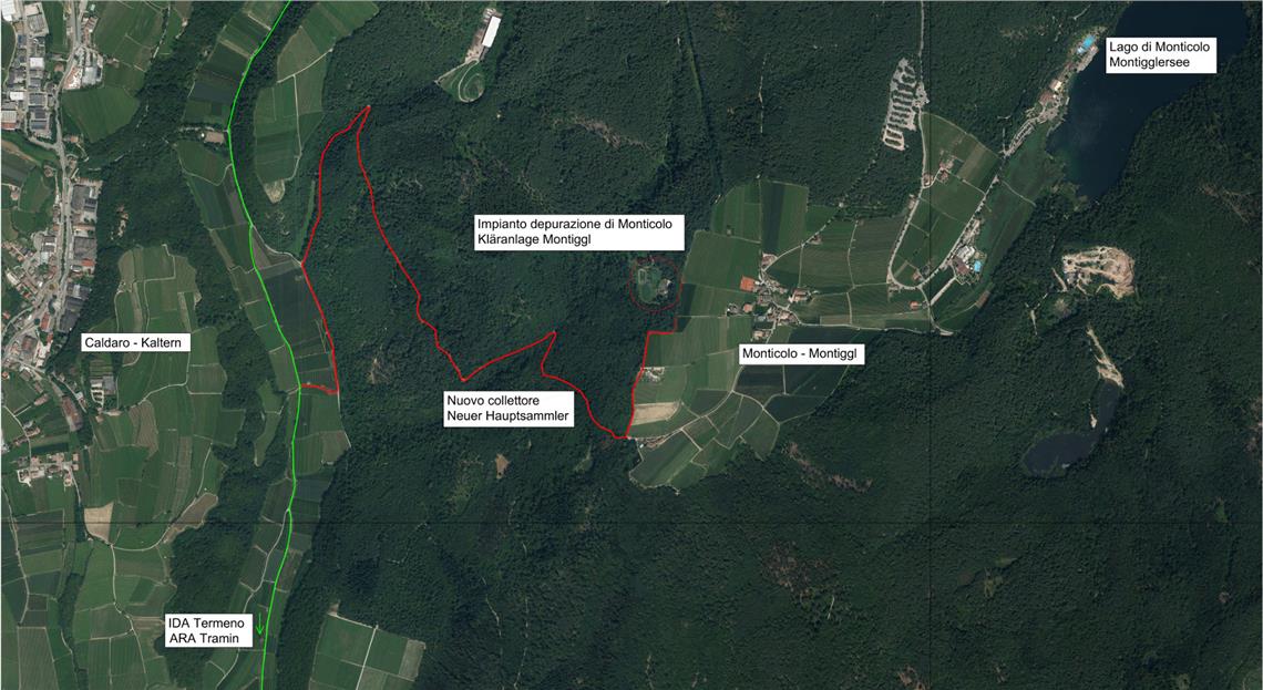 Vor kurzem wurden die Bauarbeiten an der Kanalisation abgeschlossen, die die Fraktion Montiggl in der Gemeinde Eppan mit dem übergemeindlichen Hauptsammler des Lavason-Tals in der Gemeinde Kaltern verbindet. Die neue Leitung ermöglicht es, das kommunale Montiggler Abwasser in die Kläranlage von Tramin einzuleiten und gleichzeitig die kleine Kläranlage in Montiggl stillzulegen. "Dies bringt sowohl ökologische als auch ökonomische Vorteile", unterstreicht der Landesrat für Umwelt und Energie, Giuliano Vettorato: "Größere Anlagen wie jene in Tramin arbeiten im Vergleich zu kleineren Anlagen effizienter. Zudem werden durch die Stilllegung der Kläranlage Montiggl Betriebskosten gespart."
