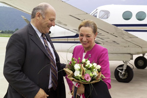LH Durnwalder begrüßt Min. Ferrero-WaldnerBei der Begrüßung bei ihrer Ankunft am Bozner Flughafen bedankte sich der Landeshauptmann dafür, dass sich die Ministerin die Zeit genommen habe, höchstpersönlich bei der Eröffnung der Ausstellung zu Ehren des aus Ladinien stammenden Künstlers Richard Agreiter im Ladinischen Landesmuseum auf Schloss Thurn anwesend zu sein. Damit leiste die österreichische Bundesministerin einen wertvollen Beitrag zur Aufwertung der ladinischen Sprache und Kultur in Südtirol. Auch wenn die Ladiner nicht ausdrücklich als eigene Volksgruppe im Pariser Vertrag erwähnt sind, so haben doch die Südtirol betreffenden Verfassungsgesetze von 1972 und 2001 und die Streitbeilegungserklärung von 1992 den Schutz der kleinsten und gleichzeitig ältesten Volksgruppe verankert und damit zur Hebung des Selbstbewußtseins der Ladiner beigetragen, woraus sich nicht zuletzt auch die Tatsache erklären lasse, dass die Ladiner in den beiden ladinischen Tälern Südtirols seit 1971 wiederum zunehmen und heute die zahlenmäßige Stärke wie unter Alt-Österreich haben, so der Landeshauptmann.