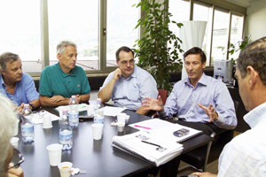 Gemeinsam mit Landesrat Widmann und Vizebürgermeister Pichler Rolle diskutierten der Direktor der SAD, Piero Maccioni, der Direktor der SASA, Ardelio Michielli, der Verkehrsressortleiter des Landes, Gianfranco Jellici, und Vertreter der Stadtgemeinde Bozen die Verkehrsproblematik der Landeshauptstadt.
