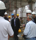 In den Weihnachtsferien steht der Umzug in die neuen Theorieräume an, die im Zuge der ersten Bauphase nun fertig gestellt worden sind und in diesen Tagen eingerichtet werden. Die Praxisräume in den Außenstellen werden voraussichtlich noch bis zum Schuljahr 2007/2008 gebraucht. Dann erst wird nämlich die zweite Bauphase abgeschlossen sein. Die umfasst den Bau vier neuer Stockwerke mit weiteren Klassenräumen und Werkstätten. Die Schule wird nach Abschluss der Arbeiten 137.283 Kubikmeter umfassen. Kosten wird das große Gebäude dem Land voraussichtlich an die 95 Millionen Euro. Bis jetzt sind rund 20 Millionen Euro verbaut worden. Derzeit gehe der Bau gut voran, sagt Projektsteurer Gerhrad Rohrer.