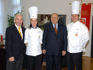Die jungen Köche haben Landeshauptmann Durnwalder von ihren Erfolgen bei der Köcheolympiade erzählt. Roman Heiss hat eine Goldmedaille errungen, Philip Hafner eine Silbermedaille und Hannes Pignater, der sich bereits einmal Weltmeister nennen konnte, ebenfalls eine Silbermedaille. Vor allem auch aufgrund solcher Erfolge sei Südtirol in anderen Ländern ein Begriff, meinte Köcheverbandsgeschäftsführer Spinell. „Mit euren Leistungen seid ihr eine gute Visitenkarte für das Land“, lobte Durnwalder, der allen Gewinnern gratulierte. Gerade in Südtirol, wo es viel Tourismus gebe, sei es wichtig zu zeigen, dass die Dienstleistungen stimmten, meinte er, und da seien gute Köche das Um und Auf. Nicht nur der Köcheverband, auch die Südtiroler Gastbetriebe könnten sich freuen, solch gute Köche zu haben, so der Landeshauptmann. Die Köche sollten Traditionen wahren, aber auch den Mut haben, Neues auszuprobieren und sich weiterzuentwickeln, meinte Durnwalder.