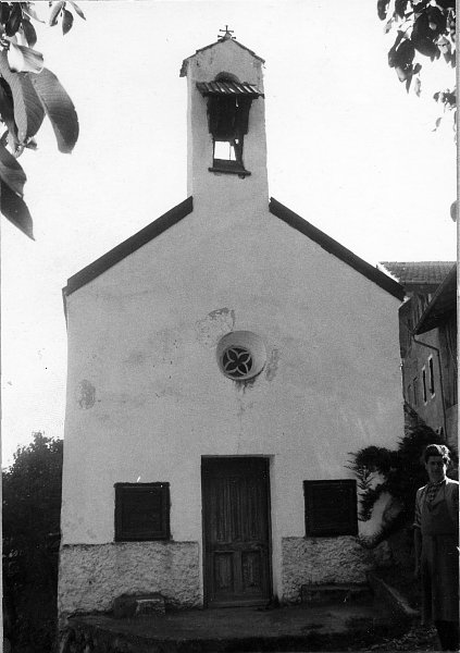 Kapellenbau aus dem 17. Jh., Fassadenglockenmauer, polygonaler Chorschluß, Kreuzgratgewölbe.