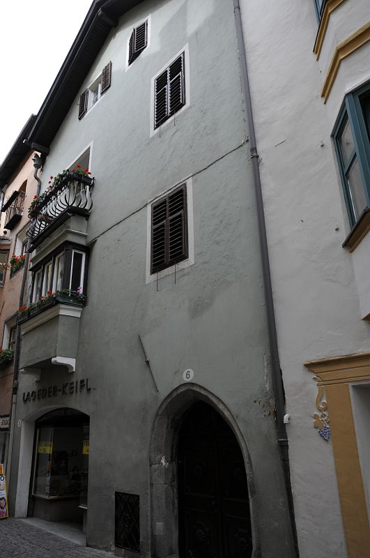 Polygonaler Erker, Rundbogentür, der Ausgang mit Gratgewölbe. Lichthaube mit offenen Rundbögen, 16. Jh.