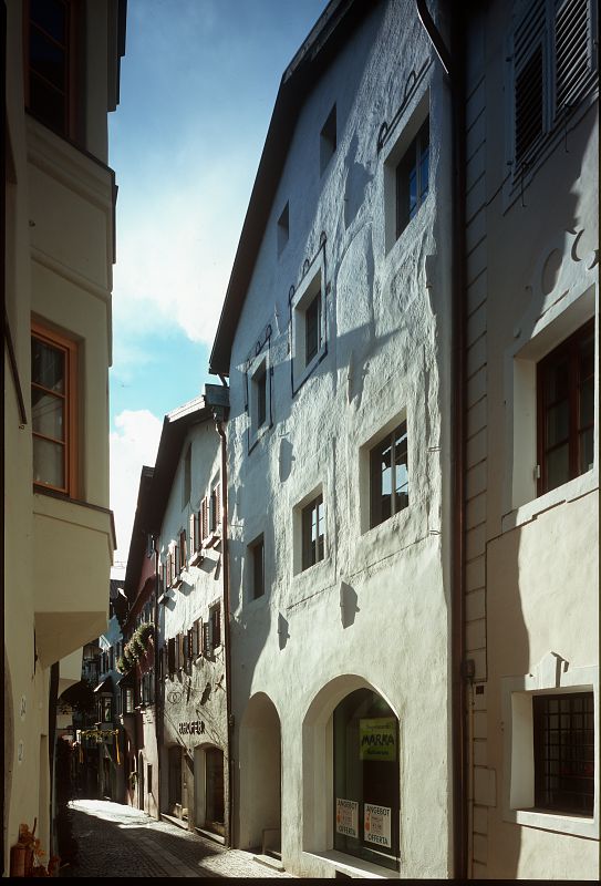 Im Keller Mauerwerk mit regelmäßigen Steinlagen. Hausgang mit Balkendecke. Im ersten Stock gotisches Stubengetäfel mit Balkendecke, spätes 15.Jh; am Unterzugsbalken Flachschnitzerei.