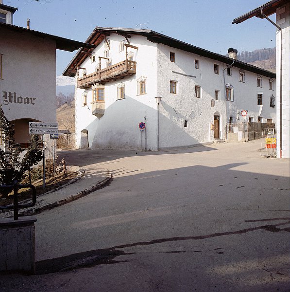 Wohnhaus.Polygonaler Erker mit Mariahilfbild und zwei Wappen. Fenster und Eckbemalung. Gewölbter Aufgang, 16. Jh. Fassadensöller. Am bergseitigen Giebel Oculifenster.