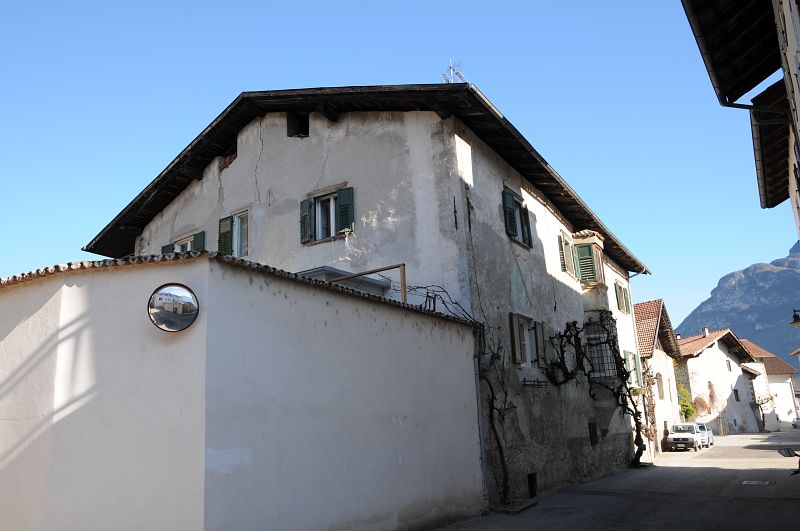 Herrschafts und Wirtschaftsgebäude mit einer Zinnenmauer verbunden. Steingerahmtes Rundbogentor, am Stadel verblaßtes Fassadenfresko (St. Florian). Am Wohnhaus doppelgeschossiger Erker, rückwärts Freitreppe und Doppelbogenfenster.
