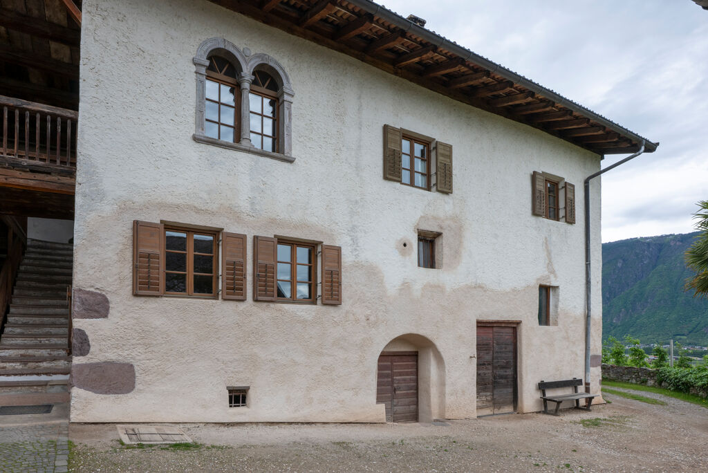 Einhof. Am bergseitigen Stadel Rundbogentor und Bundwerkgiebel. Wohnhaus mit teilweise steingerahmten vergitterten Fenstern. Gegen Südosten überdachte Freitreppe und Doppelbogenfenster, 17. Jh.