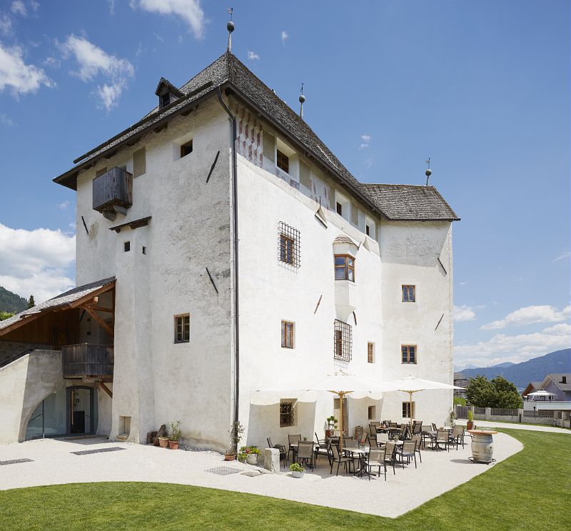 Bau mit Erkerturm und Polygonalerker. An der Südfassade und an der Tormauer Wappen mit Jahreszahl 1667. Labe mit Kreuzgratgewölbe, getäfelte Stuben, Ofen um 1600.