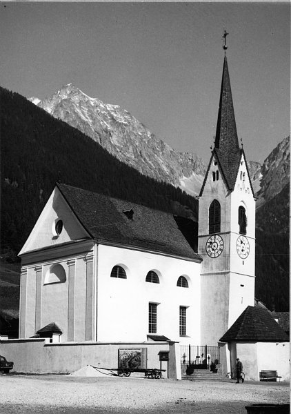Eine Pfarrei 1220 erwähnt. Spitzturm spätgotisch, die spätbarocke Kirche unter Leitung Jakob Santers 1794 erbaut. Polygonaler Chor mit Flachkuppel, Tonne mit Stichkappen im Langhaus, Lünettenfenster, Rechteckfenster, an der Fassade Pilastergliederung. Im Chor Deckengemälde von Johann Renzler um 1795. Friedhofskapelle: Kapelle mit polygonalem Chorschluß und Kreuzgratgewölbe, 1715 erbaut. Rechteckfenster, Rechtecktür, Schindeldach.