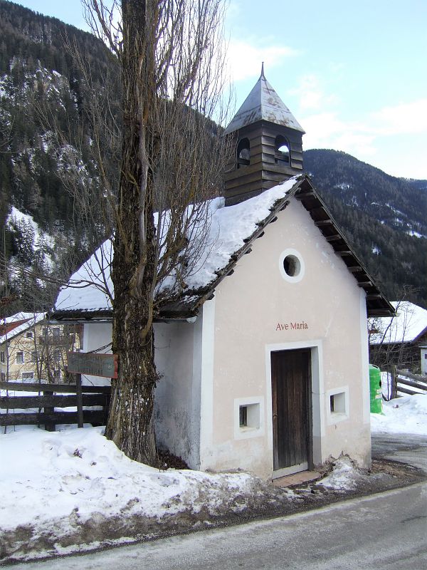 Kleiner Bau mit polygonalem Abschluß, Dachreiter und Tonnengewölbe. Inschrift: 1816 1.U.P. Schindeldach.