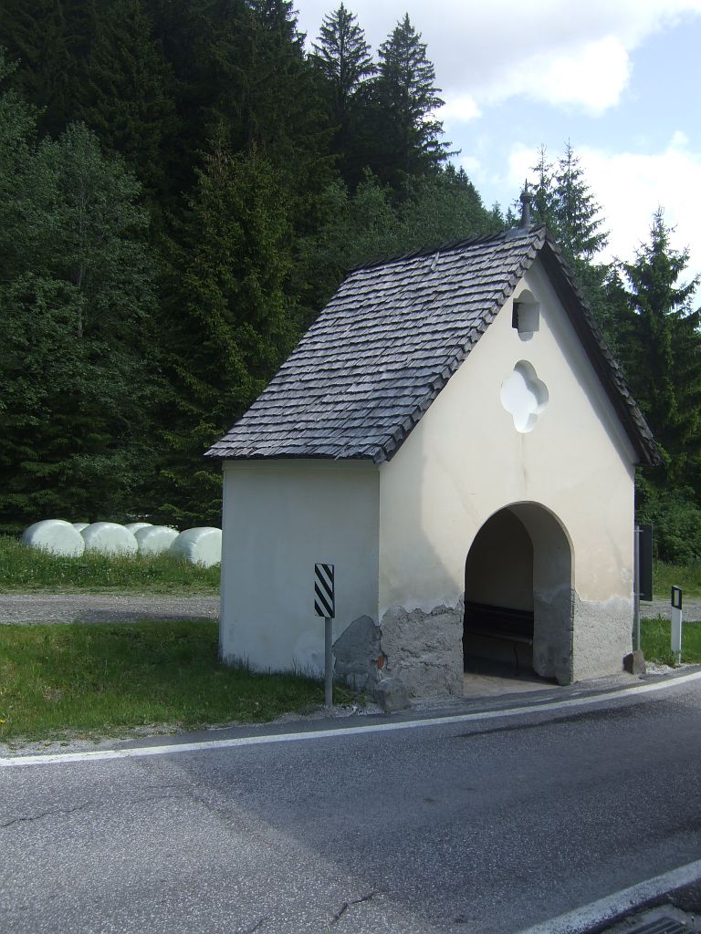 Der Antoniuskapelle gegenüber. Dreiseitiger Abschluß, Rundbogenöffnung. Christus als Brunnenfigur, 17. Jh. Schindeldach.
