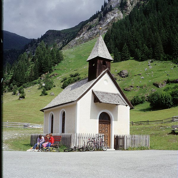Um 1745 erbaut. Polygonaler Chorschluß, Tonnengewölbe mit Stichkappen. Hölzerner Dachreiter mit Pyramide. Rundbogenfenster, -tür. Schindeldach.