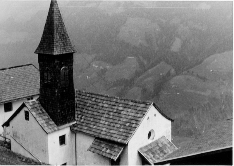 1743 erbaut, 1841 und 1904 renoviert und neu eingewölbt. Hölzernes Türmchen, dreiseitiger Chorschluß, Tonnengewölbe mit Stichkappen, Rundbogenfenster. Schindeldach.
