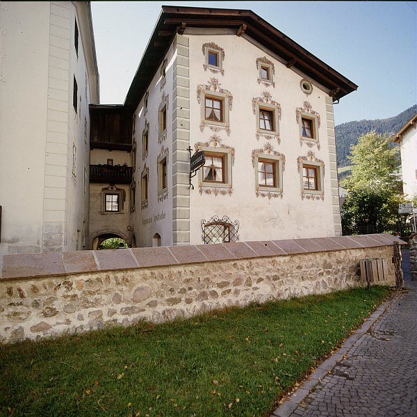 Ehemaliger Zachelwirt. Viergeschossiger Bau, am Giebel Oculus. Gemalte Fensterumrahmungen mit Vasen und Blumengehängen, Anfang 19. Jh. Am Bau Jahreszahl 1558. An der Fassade Reste eines Kreuzigungsfreskos, 16. Jh.