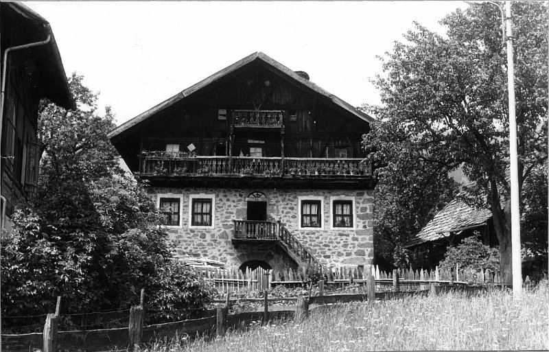Ehemaliger Edelsitz in Sichtmauerwerk mit Rundbogentür, im Keller gewölbte Räume. Rückwärts turmartiger Anbau. Aufstockung in verbrettertem Giebelbundwerk mit Söllern. Gotisches Stubengetäfel mit Tonnenbalkendecke.