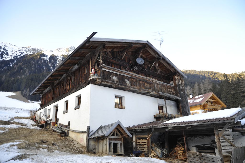 Kunstvoll geschnitztes Giebelbundwerk, am Söller volkstümliche Malereien (Katze, Hund). Stube mit bemaltem Mittelfeld (St. Antonius), 1814. Bemalte Türflügel. In der Küche Tonnengewölbe.