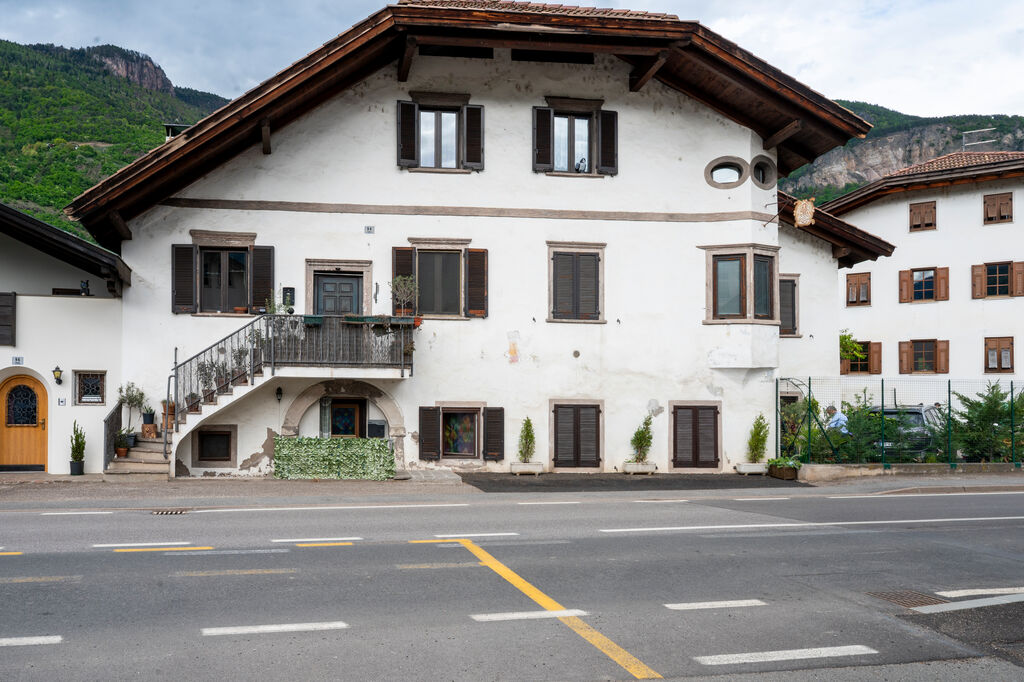Dreigeschossiger Bau mit steingerahmten Fenstern, Oculi, Freitreppe und Eckerker. Im ersten Stock Haustür in Steinrahmung, im Vorraum Deckenfresko in Stuckrahmen.