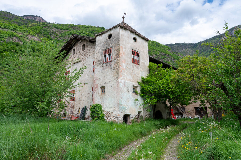 Wohnhaus.Freitreppe, steingerahmte Rundbogentür, Turmanbau mit gemalten Eckquadern und Fensterrahmungen, 16. Jh.