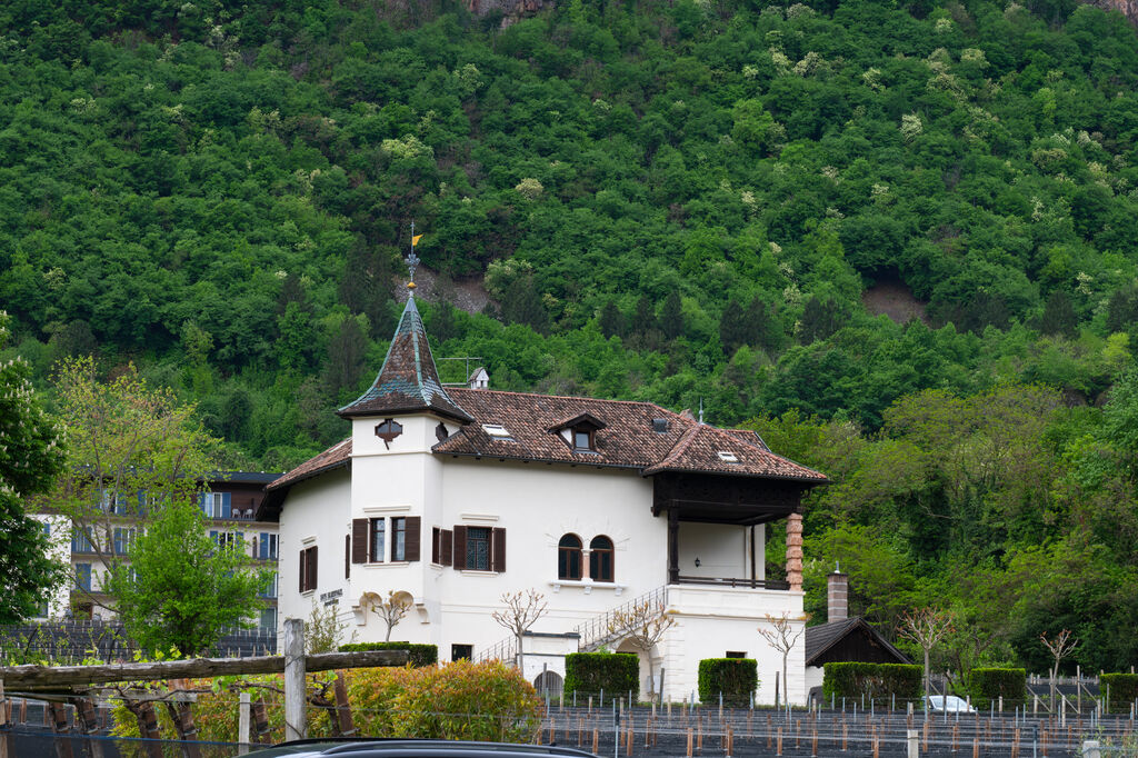 Zweigeschossiger Bau vom Ende des 19. Jahrhunderts. Freitreppe, gedeckte Altane mit Holz- bzw. Steinpfeiler, Eckerker mit glasiertem Ziegeldach, Doppelbogenfenster. Im Erkerzimmer an der Decke gemalte Pergola, grüner Kachelofen und Fenster mit bemalten Scheiben aus der Bauzeit.