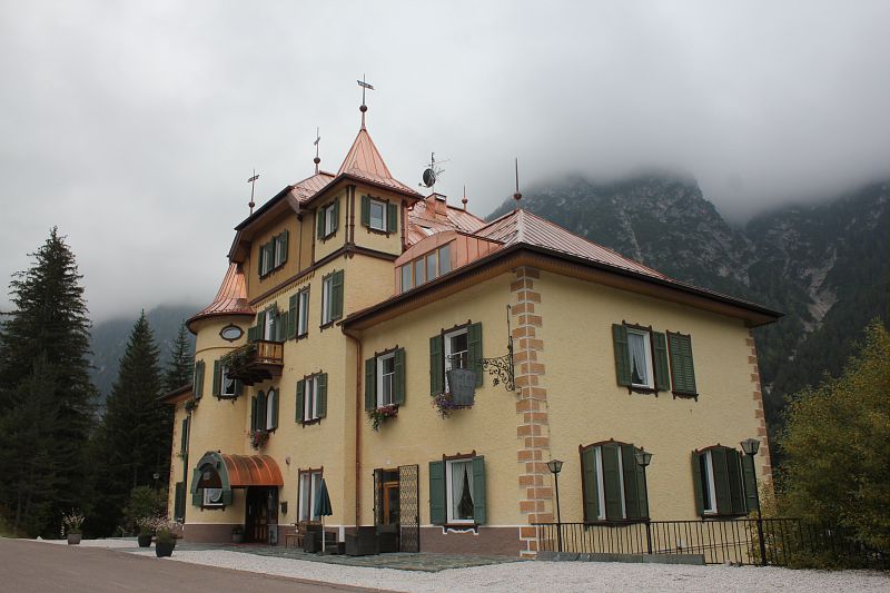 Zweigeschossiger Bau der Gründerzeit, unmittelbar am Toblacher See gelegen. An der Ostseite rundes Treppentürmchen mit Spitzhelm und zentraler, mansardenförmiger Überhöhung. An den Fassaden Rechteck- bzw. dreiteilige Flachbogenfenster mit originalen Einfassungen und Jalousien. Westseitig Verandazubau über kannellierten Säulen. Im Erdgeschoss ursprünglicher Treppenaufgang mit kannelliertem Pfosten und gedrechseltem Geländer.