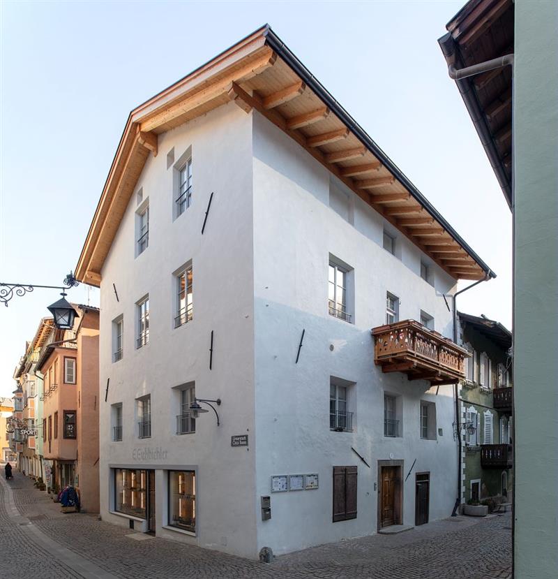 Giebelständiges, viergeschossiges, dreiachsiges Gebäude. Die Fassade wurde bei der Schleifung des Bozner Tores im 19. Jahrhundert ebenfalls abgebrochen und etwas zurückversetzt wieder aufgebaut. Gewölbte Räume (Sterngratgewölbe, Tonnengewölbe mit Spitzkappen) im Keller- und 1. Obergeschoss, Holztreppe, Kachelöfen aus dem 19. Jh., Türen 16 Jh. im Obergeschoss;