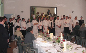 Zu kurz gekommen sind bei der Präsentation auch die Liebhaber gehobener Küche und gediegenen Services nicht. Die Küche, kreierte unter der Leitung von Walter Aichhorner und Franz Wallnöfer ein fünfgängiges Menü, das nach Rezepten aus Escoffiers Zeiten zubereitet und - angeleitet von Helene Bernhart - stilgerecht von den Schülern serviert wurde. Und auch der Blumenschmuck bei der Präsentation stammte aus dem Hause "Savoy": Für ihn hatte die 3. Klasse der Floristen an der Landesberufsschule unter der Leitung von Fachlehrerin Martha Spornberger gesorgt.